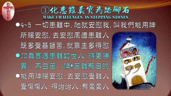 因為知道你們的信心經過試驗,就生忍耐。但忍耐也當成功,使你們成全、完備,毫無缺欠。雅各書1:3-4
